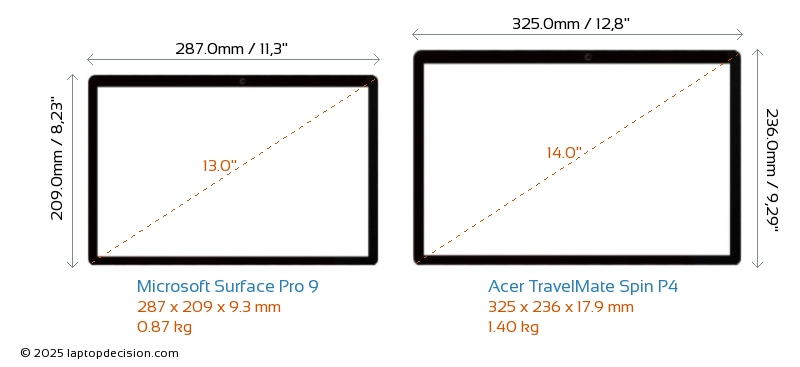 Thunderbolt両方の Surface Pro 9 と TravelMate Spin P4 は Thunderbolt 4 ポートを備えています。