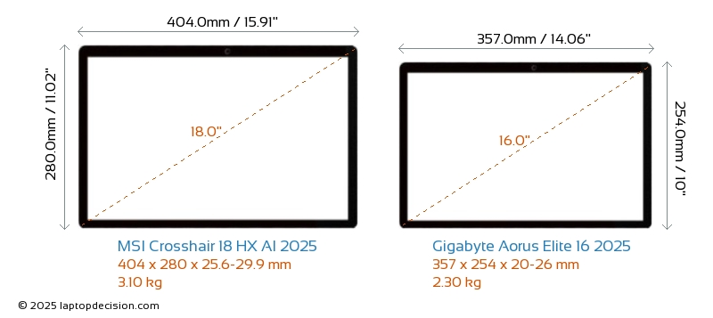 Thunderbolt両方の Crosshair 18 HX AI 2025 と Aorus Elite 16 2025 は Thunderbolt ポートを備えています。 Crosshair 18 HX AI 2025 は Thunderbolt 4 を持ち、 Aorus Elite 16 2025 は Thunderbolt 5 を持っています。