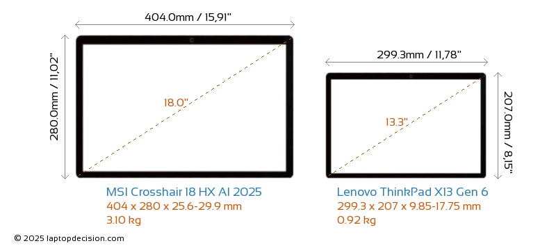 HDMI両方の Crosshair 18 HX AI 2025 と ThinkPad X13 Gen 6 は、外部モニターに接続するための HDMI ポート (1x HDMI 2.1) を備えています。
