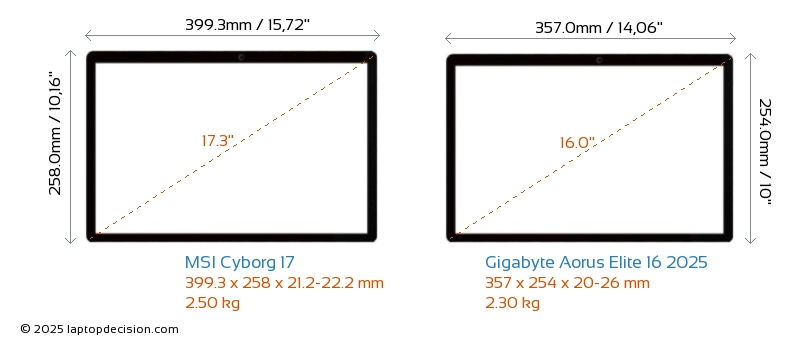 HDMI両方の Cyborg 17 と Aorus Elite 16 2025 は、外部モニターに接続するための HDMI ポート (1x HDMI 2.1) を備えています。