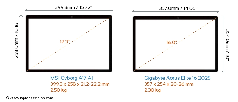 USB両方の Cyborg A17 AI と Aorus Elite 16 2025 は、2x USB 3.2 の USB-A ポートを備えています。両方の Cyborg A17 AI と Aorus Elite 16 2025 は、USB Type-C ポートを備えています。 Cyborg A17 AI は 1x USB 3.2 USB Type-C ポートを持ち、 Aorus Elite 16 2025 は 2x USB 4.0 USB Type-C ポートを持っています。