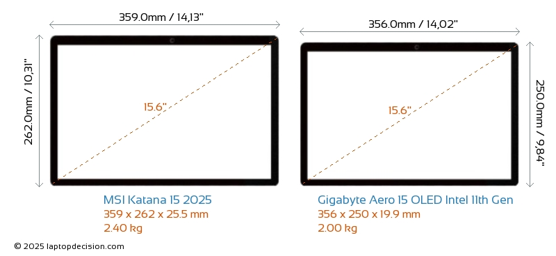 Wifi Katana 15 2025 はより高度な Wi-Fi 規格 v6E を備え、Aero 15 OLED Intel 11th Gen (v6) と比べて、より高速で信頼性の高いワイヤレス接続を提供します。