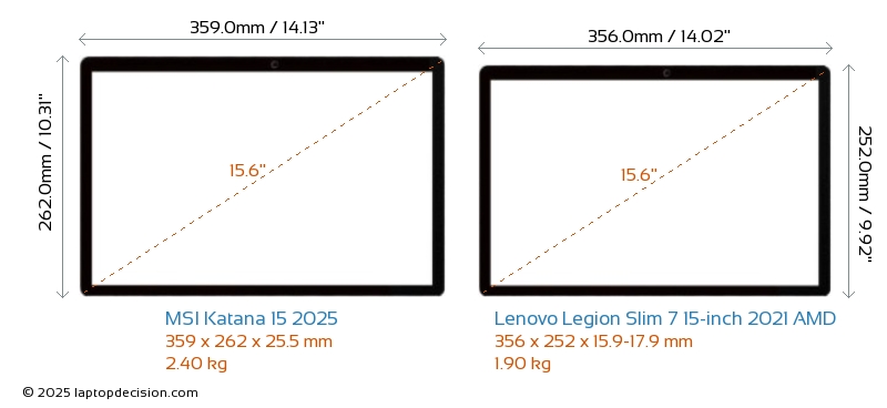 HDMI Katana 15 2025 は、外部モニターに接続するための HDMI ポート (1x HDMI 2.1) を備えています。 Legion Slim 7 15-inch 2021 AMD には HDMI ポートがありません。