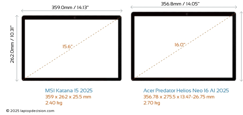 HDMI両方の Katana 15 2025 と Predator Helios Neo 16 AI 2025 は、外部モニターに接続するための HDMI ポート (1x HDMI 2.1) を備えています。
