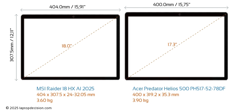 Thunderbolt両方の Raider 18 HX AI 2025 と Predator Helios 500 PH517-52-78DF は Thunderbolt ポートを備えています。 Raider 18 HX AI 2025 は Thunderbolt 5 を持ち、Predator Helios 500 PH517-52-78DF は Thunderbolt 4 を持っています。
