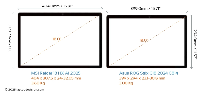 HDMI両方の Raider 18 HX AI 2025 と ROG Strix G18 2024 G814 は、外部モニターに接続するための HDMI ポート (1x HDMI 2.1) を備えています。