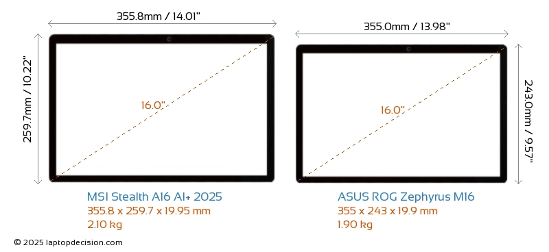 HDMIどちらの Stealth A16 AI+ 2025 と ROG Zephyrus M16 も HDMI ポートを備えています。 Stealth A16 AI+ 2025 は 1x HDMI 2.1 を提供し、ROG Zephyrus M16 は 1x HDMI 2.0 を提供します。