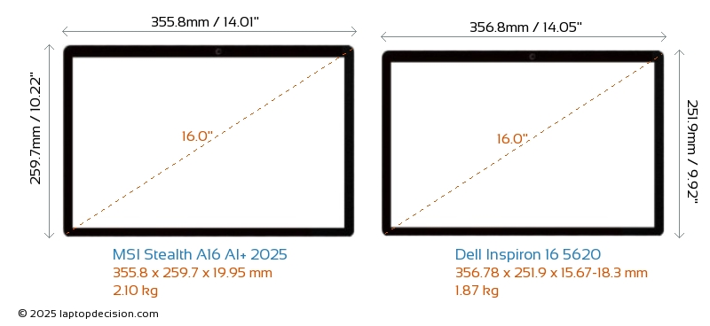 HDMIどちらの Stealth A16 AI+ 2025 と Inspiron 16 5620 も HDMI ポートを備えています。 Stealth A16 AI+ 2025 は 1x HDMI 2.1 を提供し、Inspiron 16 5620 は 1x HDMI 1.4 を提供します。
