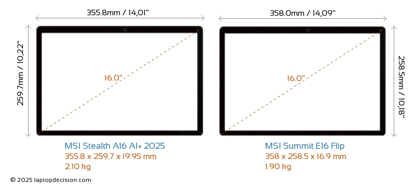 HDMIどちらの Stealth A16 AI+ 2025 と Summit E16 Flip も HDMI ポートを備えています。 Stealth A16 AI+ 2025 は 1x HDMI 2.1 を提供し、Summit E16 Flip は 1x HDMI 2.0 を提供します。