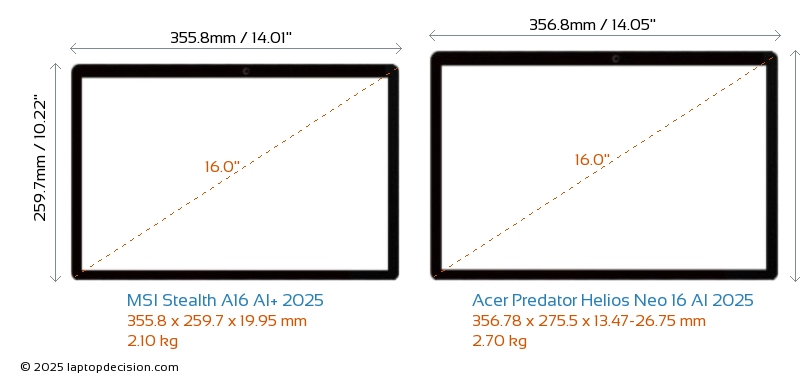 HDMI両方の Stealth A16 AI+ 2025 と Predator Helios Neo 16 AI 2025 は、外部モニターに接続するための HDMI ポート (1x HDMI 2.1) を備えています。