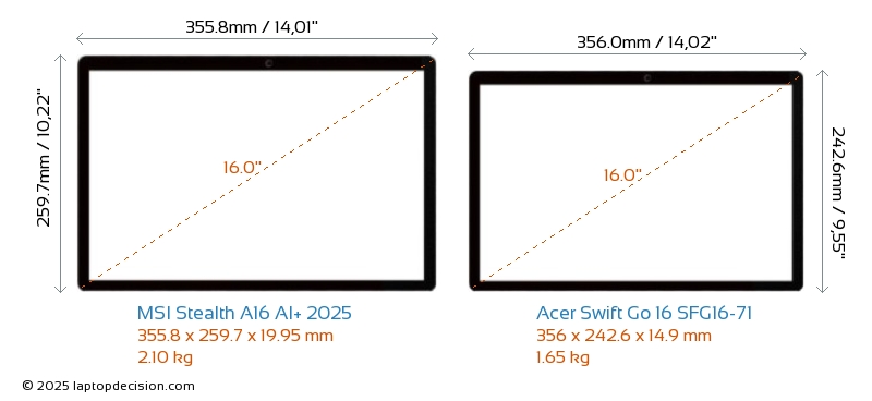 HDMI両方の Stealth A16 AI+ 2025 と Swift Go 16 SFG16-71 は、外部モニターに接続するための HDMI ポート (1x HDMI 2.1) を備えています。
