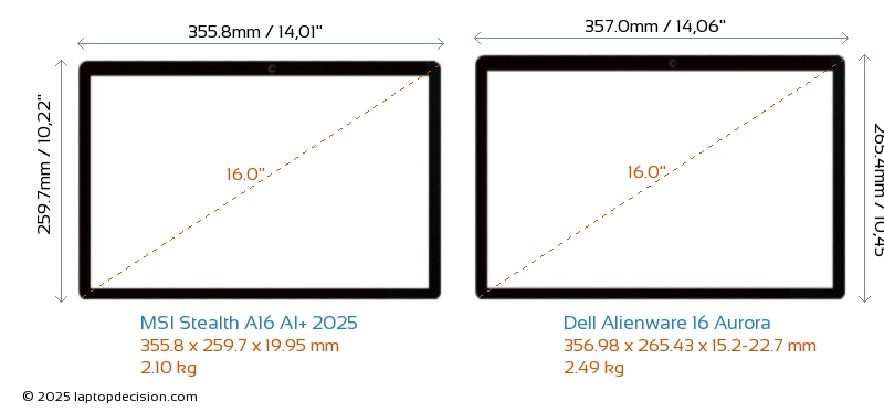 HDMI両方の Stealth A16 AI+ 2025 と Alienware 16 Aurora は、外部モニターに接続するための HDMI ポート (1x HDMI 2.1) を備えています。