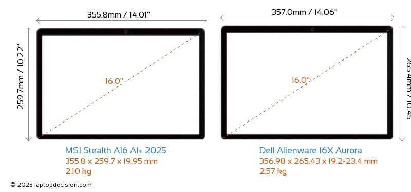 HDMI両方の Stealth A16 AI+ 2025 と Alienware 16X Aurora は、外部モニターに接続するための HDMI ポート (1x HDMI 2.1) を備えています。
