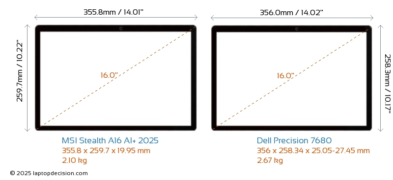 HDMI両方の Stealth A16 AI+ 2025 と Precision 7680 は、外部モニターに接続するための HDMI ポート (1x HDMI 2.1) を備えています。