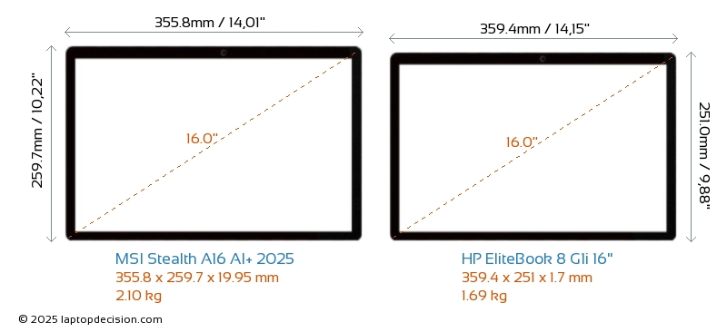 HDMI両方の Stealth A16 AI+ 2025 と EliteBook 8 G1i 16" は、外部モニターに接続するための HDMI ポート (1x HDMI 2.1) を備えています。