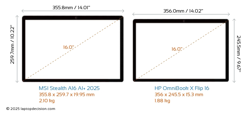HDMI両方の Stealth A16 AI+ 2025 と OmniBook X Flip 16 は、外部モニターに接続するための HDMI ポート (1x HDMI 2.1) を備えています。