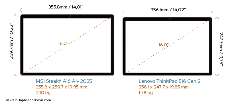 HDMI両方の Stealth A16 AI+ 2025 と ThinkPad E16 Gen 2 は、外部モニターに接続するための HDMI ポート (1x HDMI 2.1) を備えています。