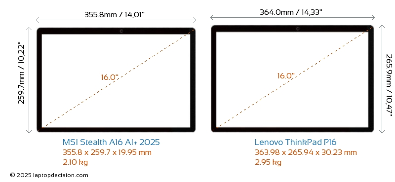 HDMI両方の Stealth A16 AI+ 2025 と ThinkPad P16 は、外部モニターに接続するための HDMI ポート (1x HDMI 2.1) を備えています。