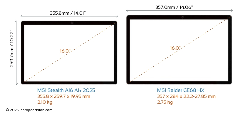 HDMI両方の Stealth A16 AI+ 2025 と Raider GE68 HX は、外部モニターに接続するための HDMI ポート (1x HDMI 2.1) を備えています。