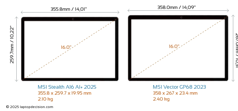 HDMI両方の Stealth A16 AI+ 2025 と Vector GP68 2023 は、外部モニターに接続するための HDMI ポート (1x HDMI 2.1) を備えています。