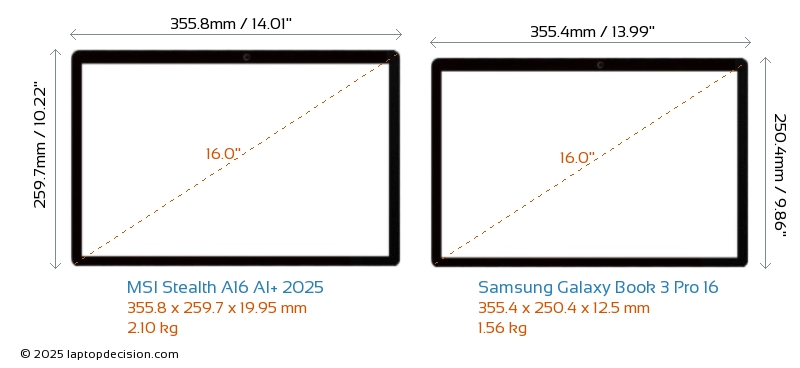 HDMIどちらの Stealth A16 AI+ 2025 と Galaxy Book 3 Pro 16 も HDMI ポートを備えています。 Stealth A16 AI+ 2025 は 1x HDMI 2.1 を提供し、 Galaxy Book 3 Pro 16 は 1x HDMI 1.4 を提供します。