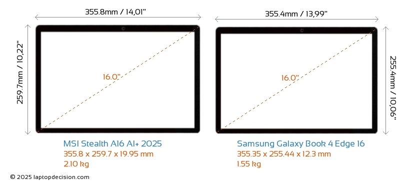 HDMI両方の Stealth A16 AI+ 2025 と Galaxy Book 4 Edge 16 は、外部モニターに接続するための HDMI ポート (1x HDMI 2.1) を備えています。