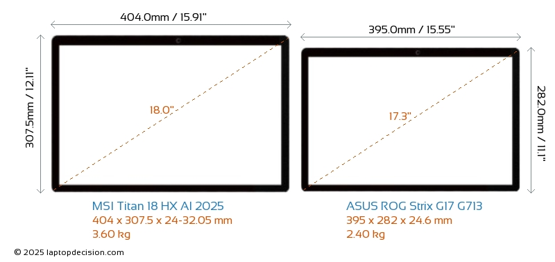 HDMIどちらの Titan 18 HX AI 2025 と ROG Strix G17 G713 も HDMI ポートを備えています。 Titan 18 HX AI 2025 は 1x HDMI 2.1 を提供し、ROG Strix G17 G713 は 1x HDMI 2.0 を提供します。