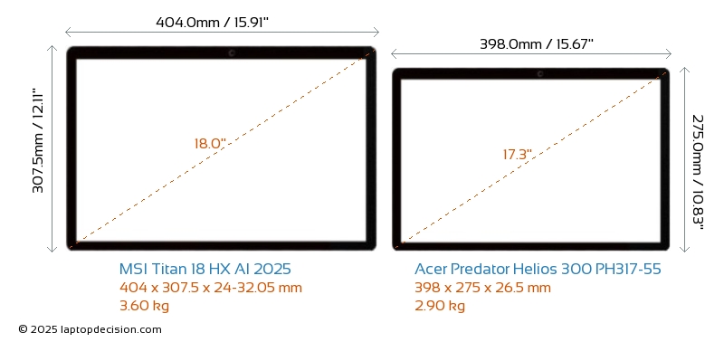 HDMI両方の Titan 18 HX AI 2025 と Predator Helios 300 PH317-55 は、外部モニターに接続するための HDMI ポート (1x HDMI 2.1) を備えています。