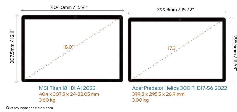 HDMI両方の Titan 18 HX AI 2025 と Predator Helios 300 PH317-56 2022 は、外部モニターに接続するための HDMI ポート (1x HDMI 2.1) を備えています。