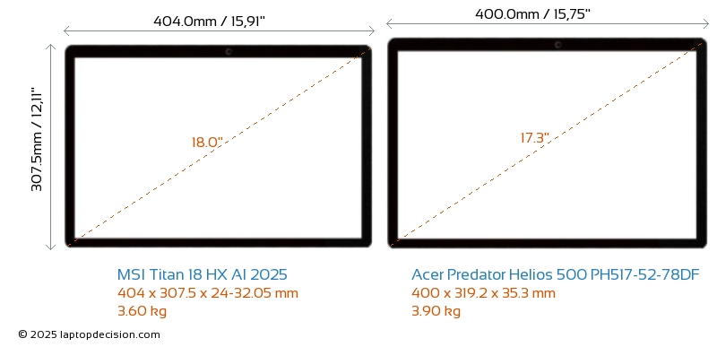 HDMI両方の Titan 18 HX AI 2025 と Predator Helios 500 PH517-52-78DF は、外部モニターに接続するための HDMI ポート (1x HDMI 2.1) を備えています。