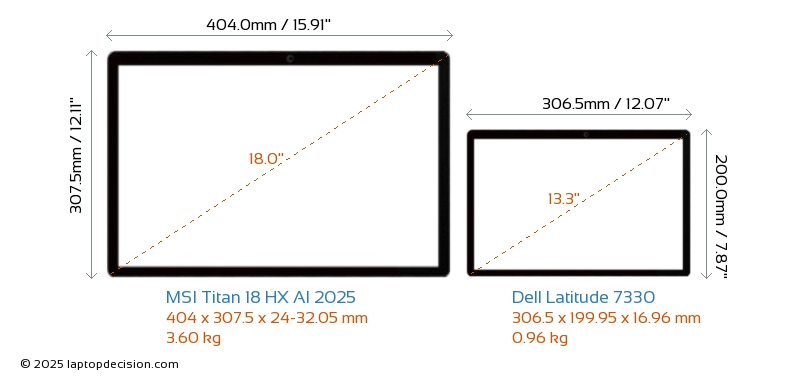 HDMIどちらの Titan 18 HX AI 2025 と Latitude 7330 も HDMI ポートを備えています。 Titan 18 HX AI 2025 は 1x HDMI 2.1 を提供し、Latitude 7330 は 1x HDMI 2.0 を提供します。