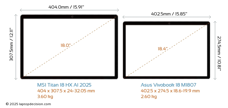 Thunderbolt Titan 18 HX AI 2025 は、Thunderbolt 5 ポートを備えています。 Vivobook 18 M1807 には Thunderbolt ポートがありません。