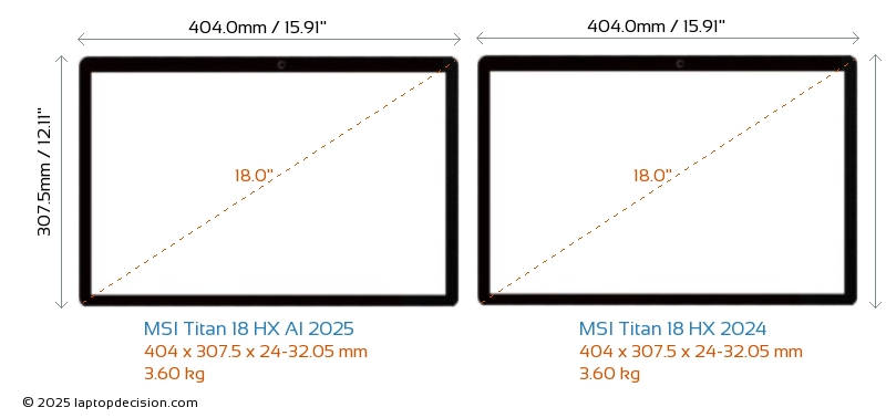 HDMI両方の Titan 18 HX AI 2025 と Titan 18 HX 2024 は、外部モニターに接続するための HDMI ポート (1x HDMI 2.1) を備えています。
