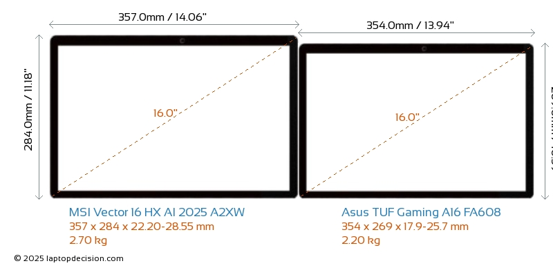 USB両方の Vector 16 HX AI 2025 A2XW と TUF Gaming A16 FA608 は、2x USB 3.2 の USB-A ポートを備えています。両方の Vector 16 HX AI 2025 A2XW と TUF Gaming A16 FA608 は、2x USB 4.0 の USB Type-C ポートを備えています。