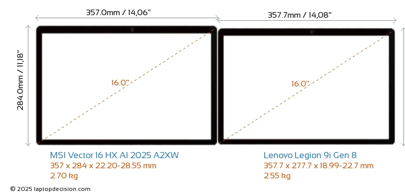 HDMI両方の Vector 16 HX AI 2025 A2XW と Legion 9i Gen 8 は、外部モニターに接続するための HDMI ポート (1x HDMI 2.1) を備えています。