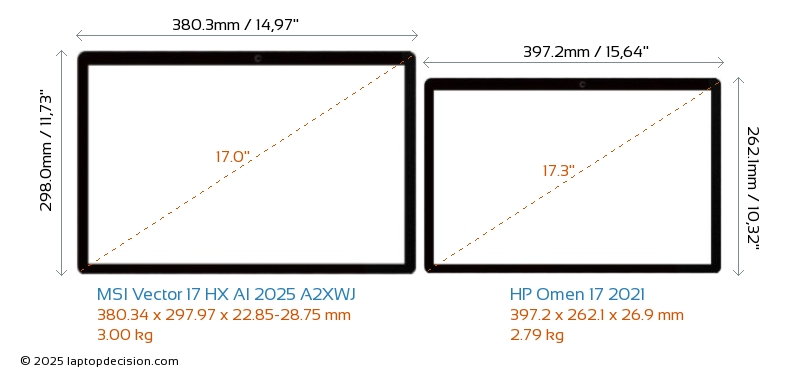 HDMI両方の Vector 17 HX AI 2025 A2XWJ と Omen 17 2021 は、外部モニターに接続するための HDMI ポート (1x HDMI 2.1) を備えています。