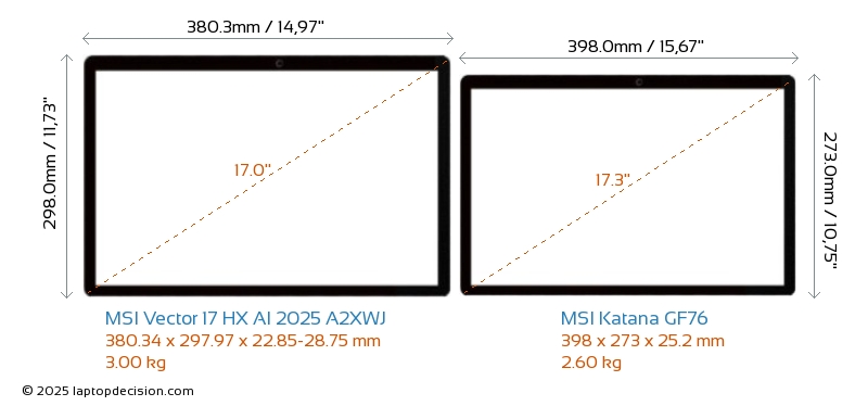 Thunderbolt Vector 17 HX AI 2025 A2XWJ は、Thunderbolt 5 ポートを備えています。 Katana GF76 には Thunderbolt ポートがありません。