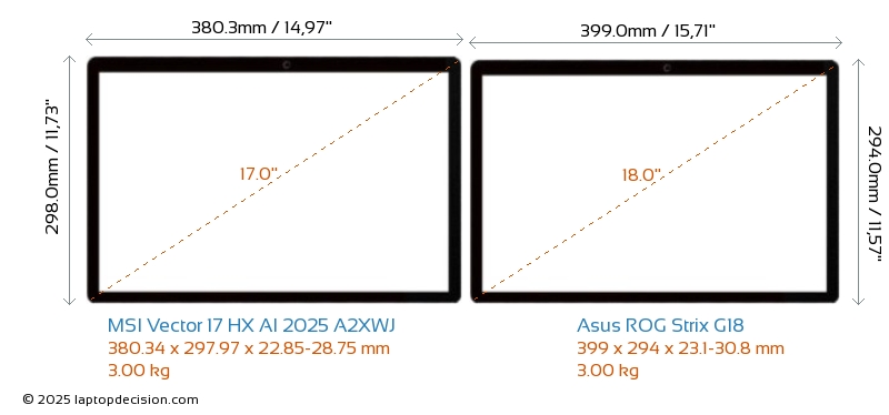 HDMI両方の Vector 17 HX AI 2025 A2XWJ と ROG Strix G18 は、外部モニターに接続するための HDMI ポート (1x HDMI 2.1) を備えています。