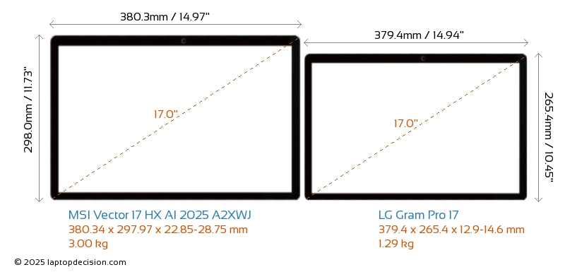 Thunderbolt両方の Vector 17 HX AI 2025 A2XWJ と Gram Pro 17 は Thunderbolt ポートを備えています。 Vector 17 HX AI 2025 A2XWJ は Thunderbolt 5 を持ち、 Gram Pro 17 は Thunderbolt 4 を持っています。