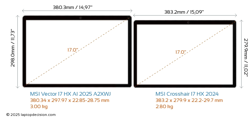 HDMI両方の Vector 17 HX AI 2025 A2XWJ と Crosshair 17 HX 2024 は、外部モニターに接続するための HDMI ポート (1x HDMI 2.1) を備えています。