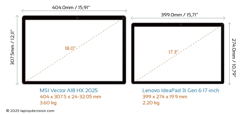HDMIどちらの Vector A18 HX 2025 と IdeaPad 3i Gen 6 17-inch も HDMI ポートを備えています。 Vector A18 HX 2025 は 1x HDMI 2.1 を提供し、IdeaPad 3i Gen 6 17-inch は 1x HDMI 1.4 を提供します。