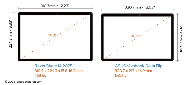 HDMIどちらの Blade 14 2025 と Vivobook Go 14 Flip も HDMI ポートを備えています。 Blade 14 2025 は 1x HDMI 2.1 を提供し、Vivobook Go 14 Flip は 1x HDMI 1.4 を提供します。