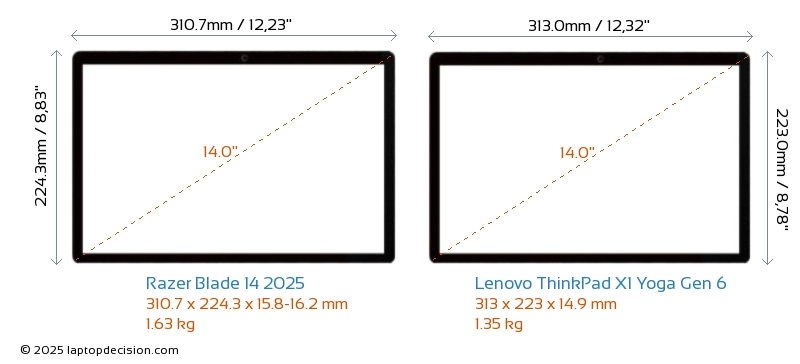 ThunderboltThinkPad X1 Yoga Gen 6 は、Thunderbolt 4 ポートを備えています。 Blade 14 2025 には Thunderbolt ポートがありません。