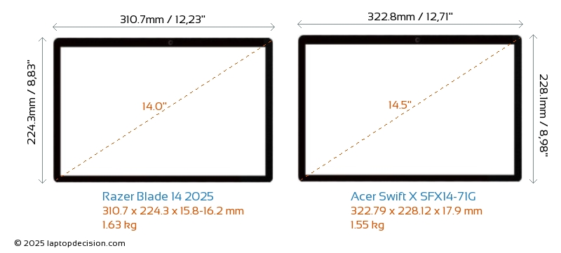 Thunderbolt Swift X SFX14-71G は、Thunderbolt 4 ポートを備えています。 Blade 14 2025 には Thunderbolt ポートがありません。