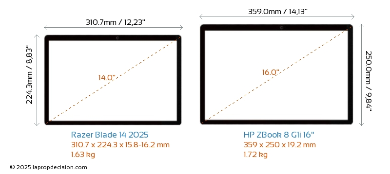 HDMI両方の Blade 14 2025 と ZBook 8 G1i 16" は、外部モニターに接続するための HDMI ポート (1x HDMI 2.1) を備えています。