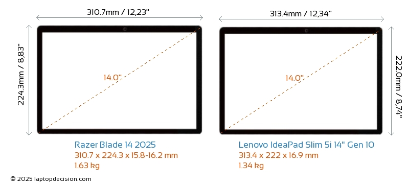 HDMIどちらの Blade 14 2025 と IdeaPad Slim 5i 14" Gen 10 も HDMI ポートを備えています。 Blade 14 2025 は 1x HDMI 2.1 を提供し、 IdeaPad Slim 5i 14" Gen 10 は 1x HDMI 1.4 を提供します。