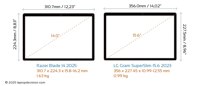Wifi Blade 14 2025 はより高度な Wi-Fi 規格 v7 を備え、 Gram SuperSlim 15.6 2023 (v6E) と比べて、より高速で信頼性の高いワイヤレス接続を提供します。