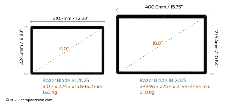 USB両方の Blade 14 2025 と Blade 18 2025 は、USB-A ポートを備えています。 Blade 14 2025 は 2x USB 3.2 USB-A ポートを持ち、 Blade 18 2025 は 3x USB 3.2 USB-A ポートを持っています。両方の Blade 14 2025 と Blade 18 2025 は、2x USB 4.0 の USB Type-C ポートを備えています。