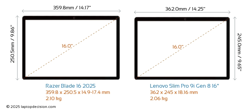 Wifi Blade 16 2025 はより高度な Wi-Fi 規格 v7 を備え、 Slim Pro 9i Gen 8 16" (v6E) と比べて、より高速で信頼性の高いワイヤレス接続を提供します。