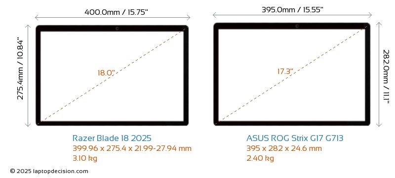 Wifi Blade 18 2025 はより高度な Wi-Fi 規格 v7 を備え、ROG Strix G17 G713 (v6) と比べて、より高速で信頼性の高いワイヤレス接続を提供します。